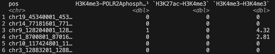 Required columns for col_cluster_file: - feature: Samples: “H3K27me3-H3K27me3”, “H3K4me3-H3K4me3”, … - label: Labels: 1,2,3…